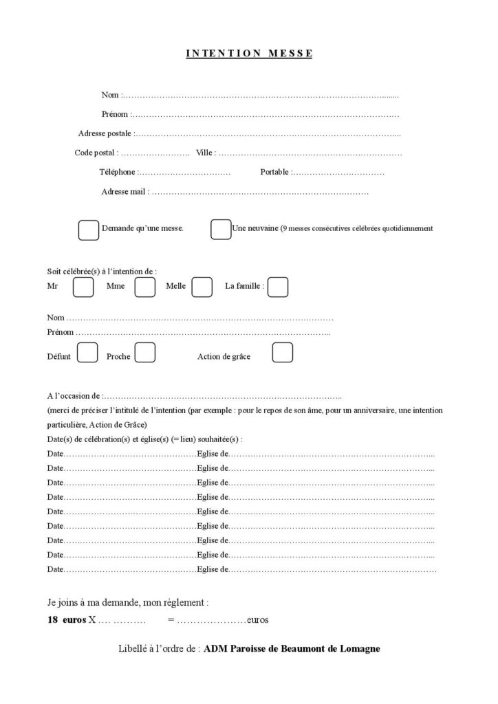 Demander une intention de messe